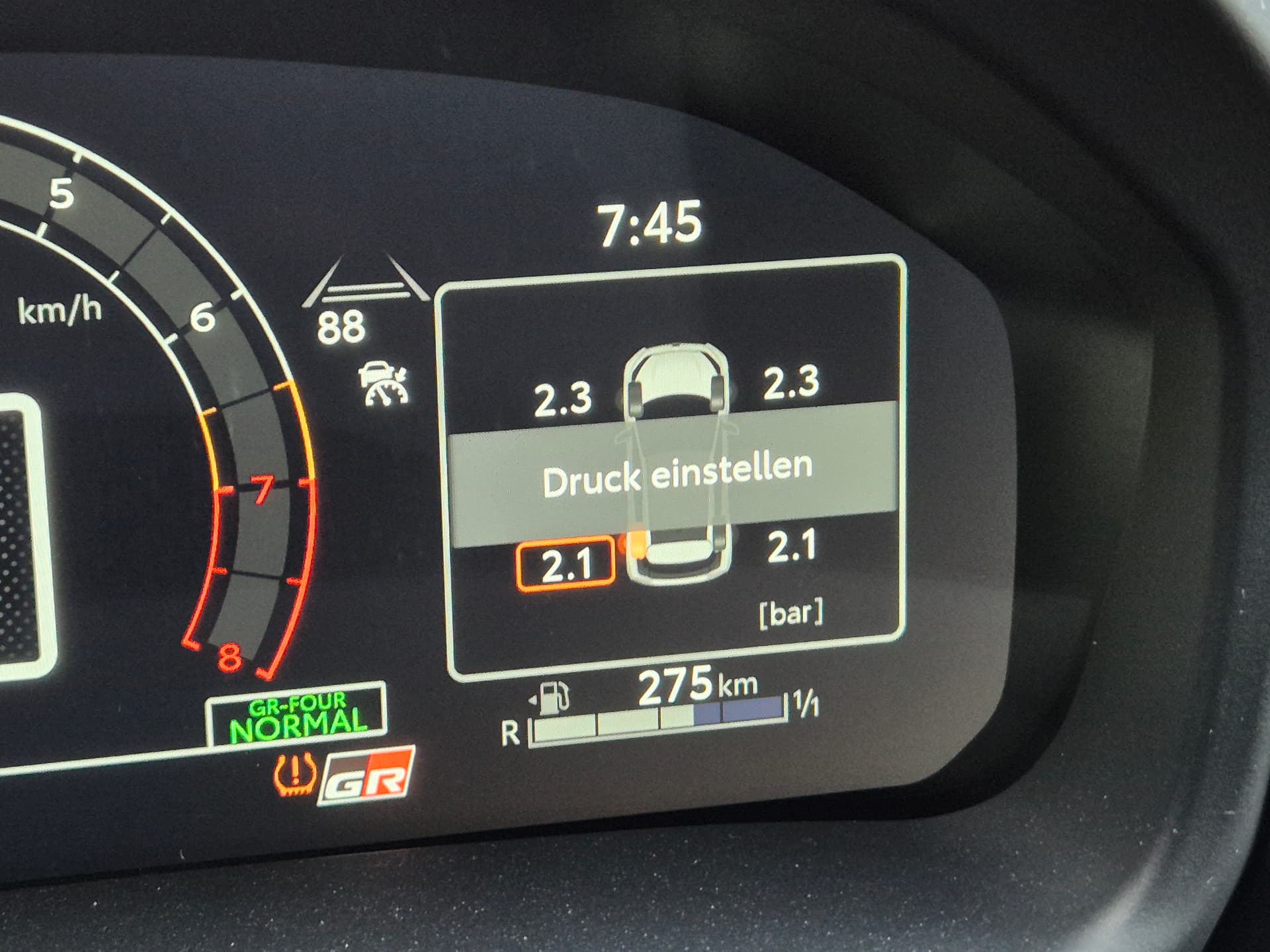 Unten kommt auch das Reifendrucksymbol in orange.