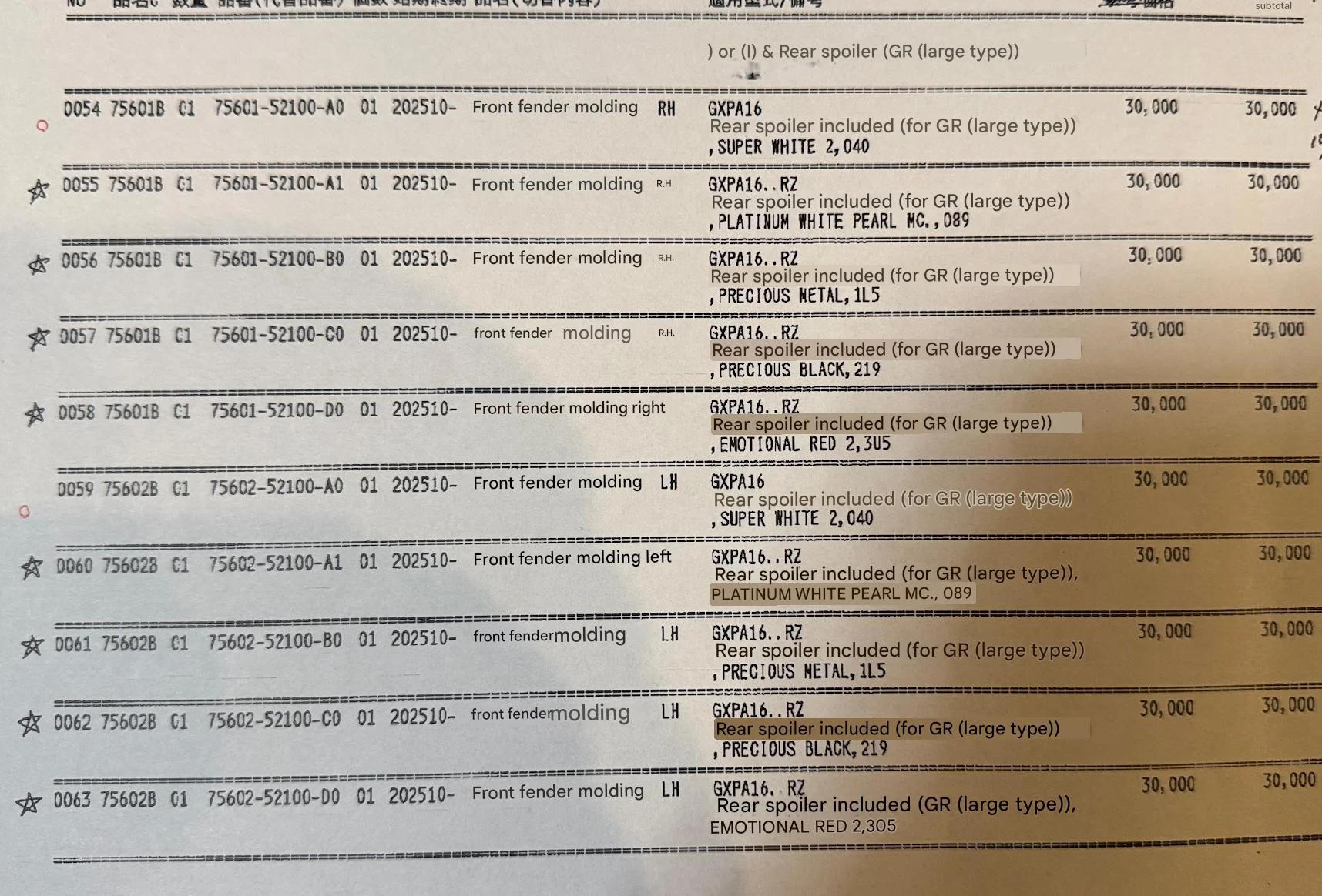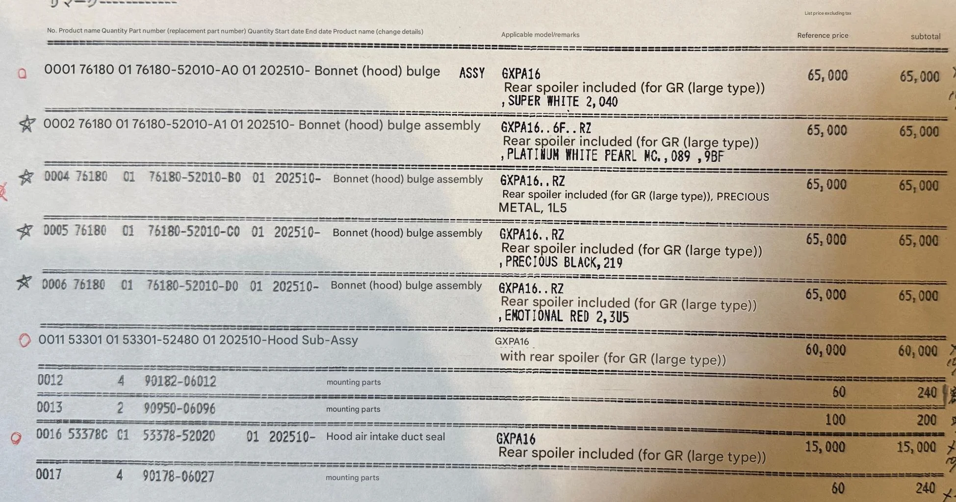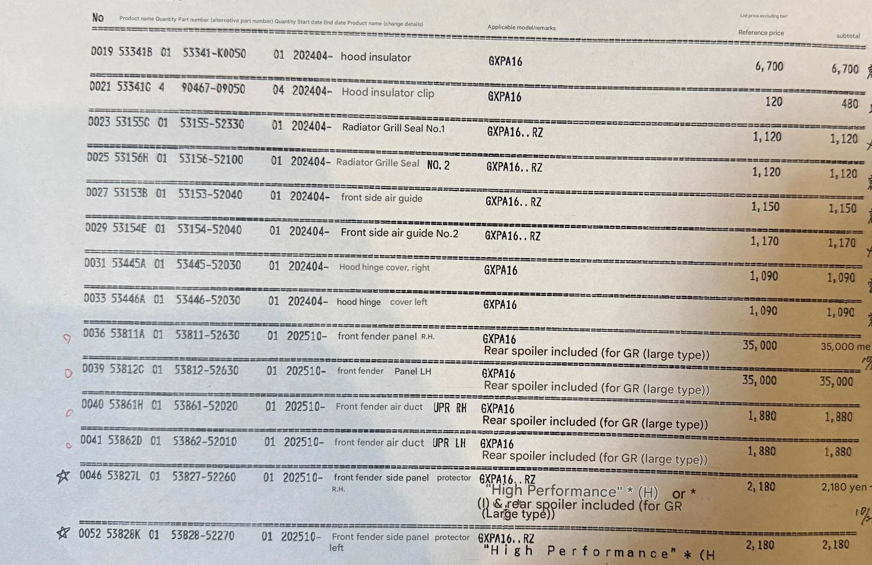 Manche Teile sind offensichtlich in Japan und Europa auf die Fahrgestellnummer eines GR mit Aero gesperrt. Somit keine einfache Möglichkeit der Bestellung im Moment. Ansonsten wären die Teile in Europa eigenartiger Weise kaum teurer wie in Japan und somit günstiger als zunächst angenommen.