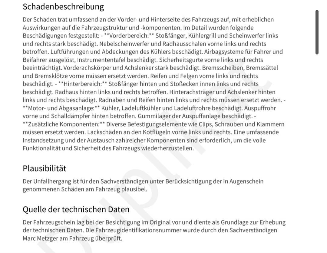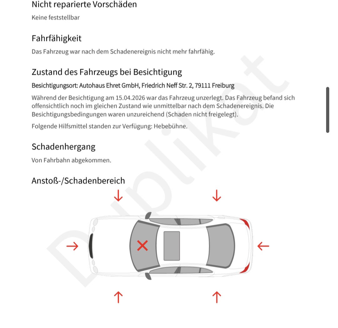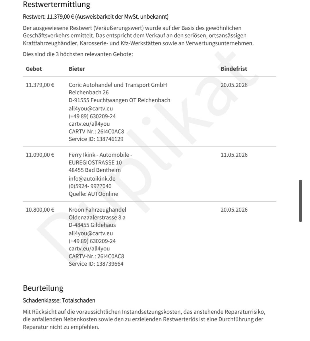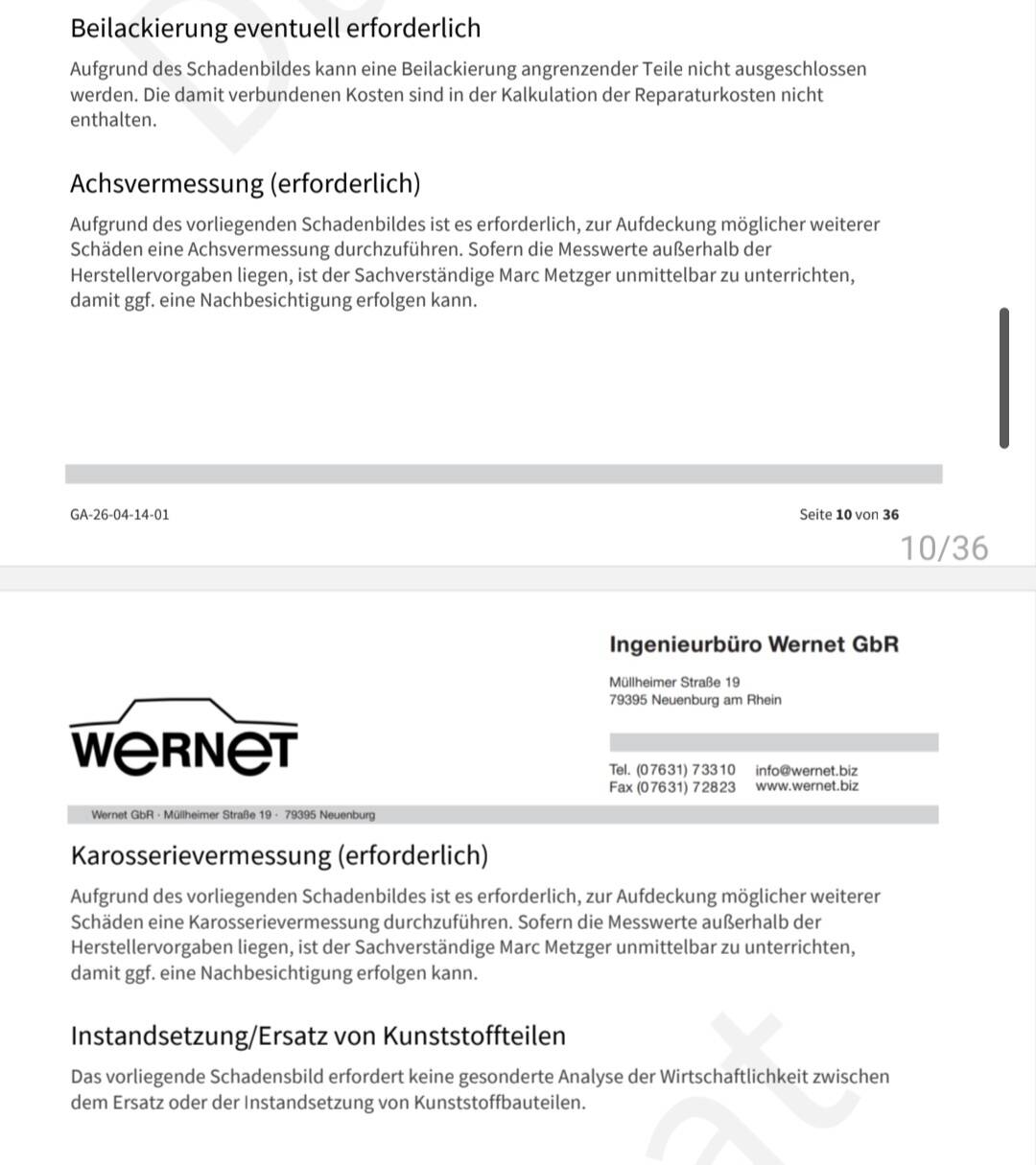 Gutachten kam heute auch und ging direkt weiter an die Vollkasko. Das wichtigste im Überblick: