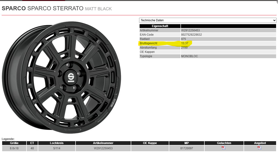 Die sparco terra sind für mich so ein bisschen der Budget Geheimtipp. Gefallen mir gut sind aber natürlich nicht so cool wie die anderen Felgen. dafür verhältnismäßig leicht und günstig.