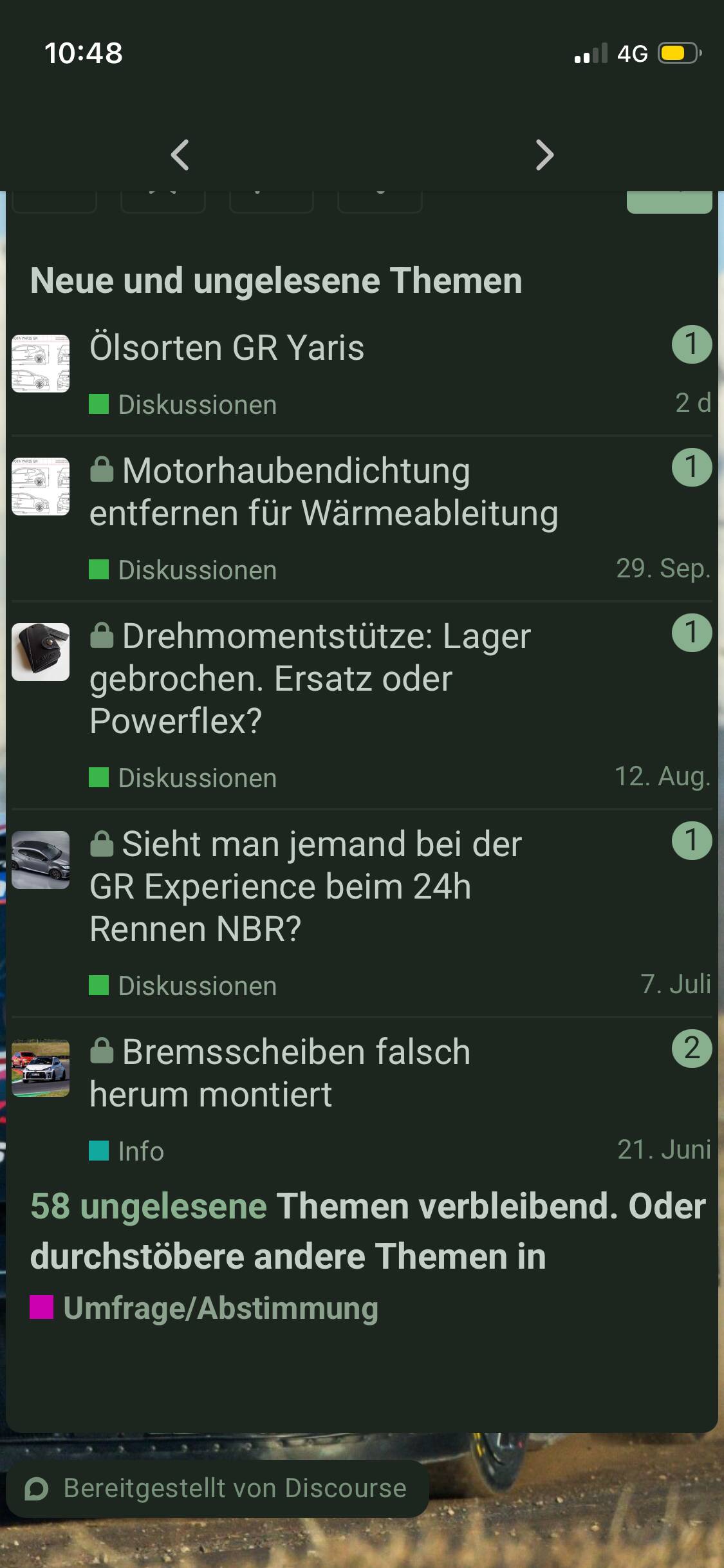 Es hilft, Dopplungen von Themen zu vermeiden: Wenn jemand etwas Neues zum gleichen Thema starten möchte (z. B. „Erfahrung mit GR Yaris -H&R-Federn nach 2024“), ist es sinnvoll, einen frischen Thread aufzumachen mit aktuellem Stand.