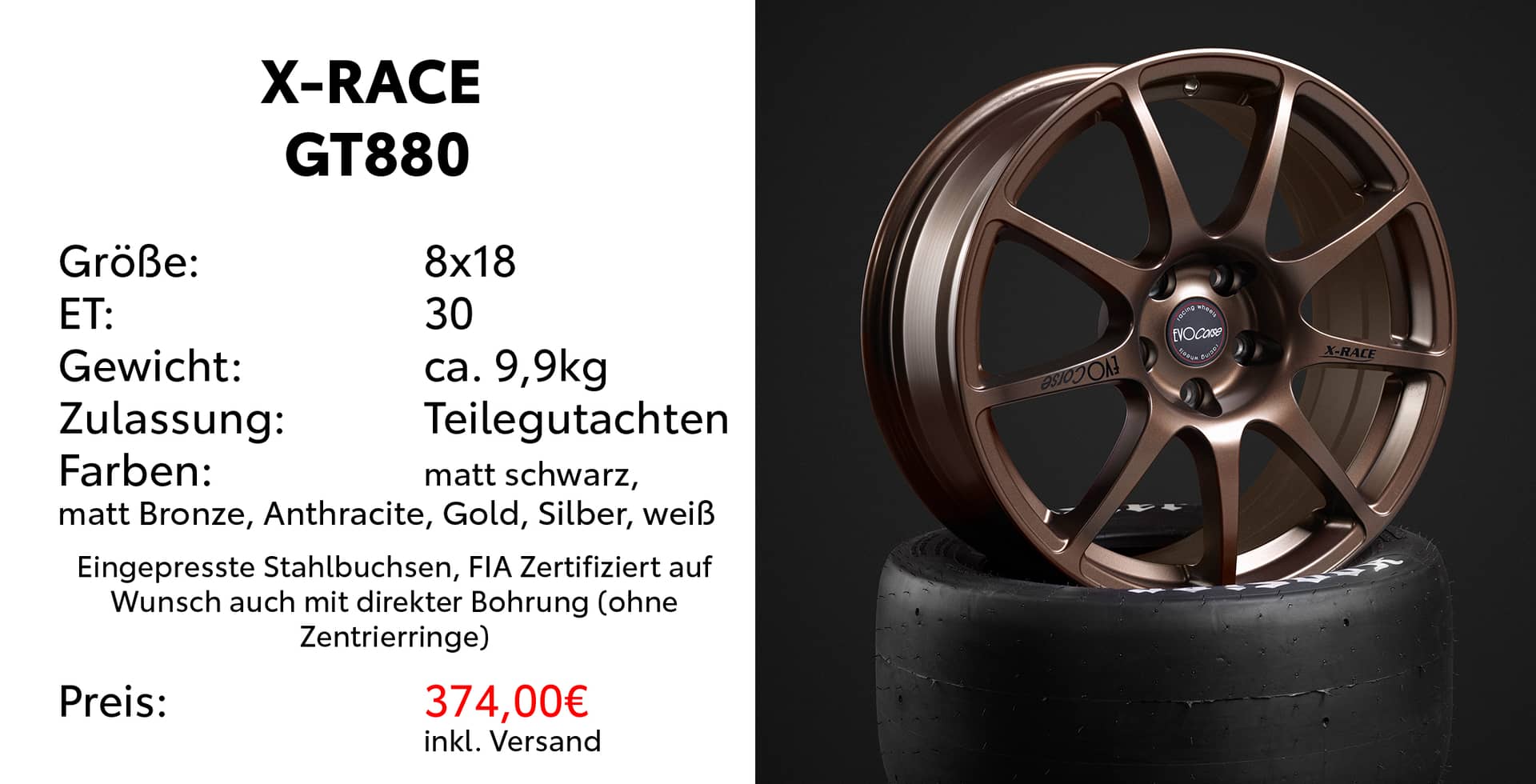 Ich hätte die GT880 auch gerne in Bronze, jedoch kann mir diese mein Händler nicht ohne Einschränkung empfehlen, da er schon Mängel damit hatte (Höhenschlag und Unwucht) und die Reklamation bei x- Race scheinbar nicht so reibungslos verlief.