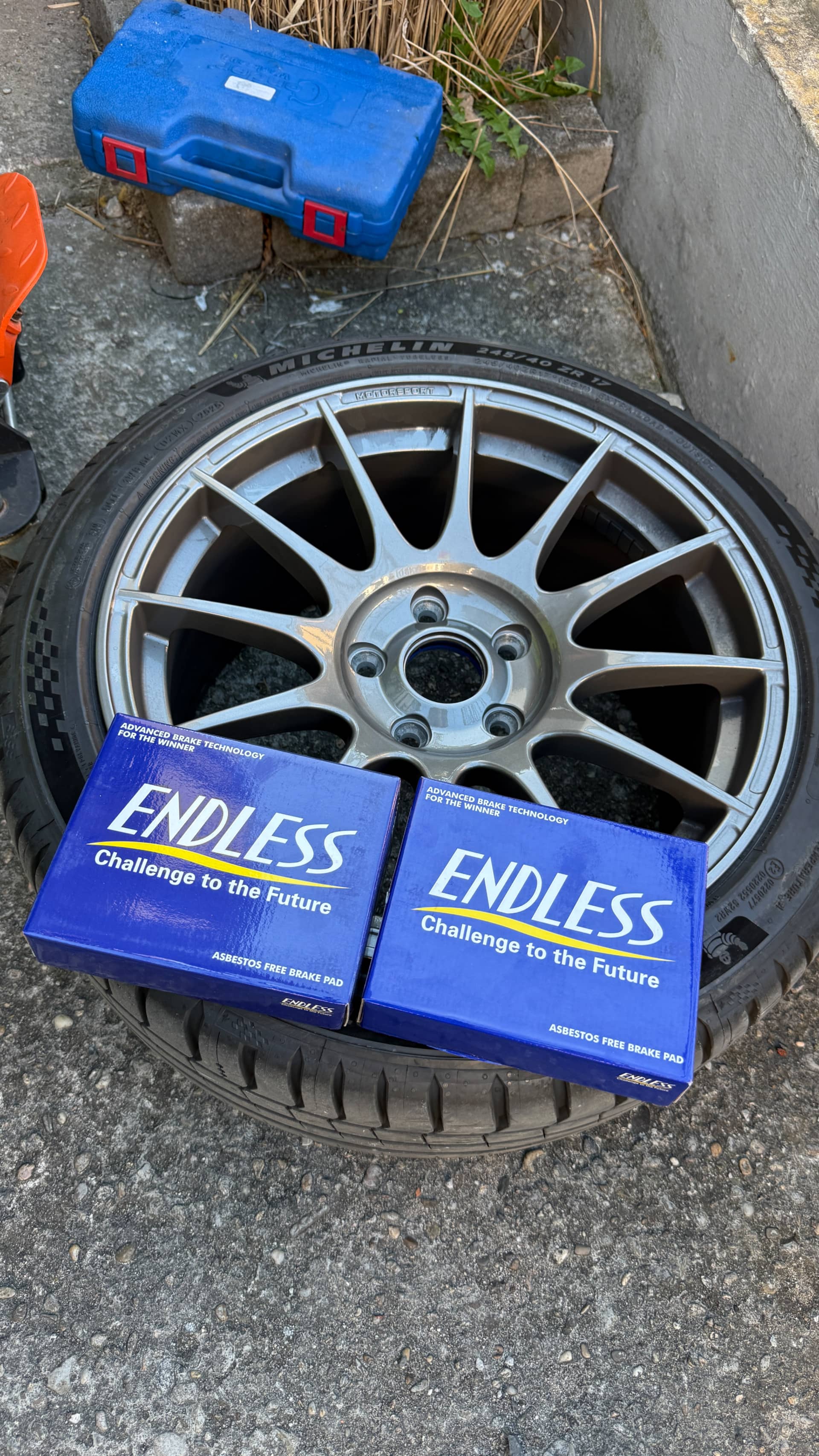 Die serienmäßigen Beläge haben ihren Job gemacht, aber ich wollte etwas mit mehr Biss und vor allem besserer Standfestigkeit bei höheren Temperaturen. Die Wahl fiel auf die Endless N84M, vorne und hinten.