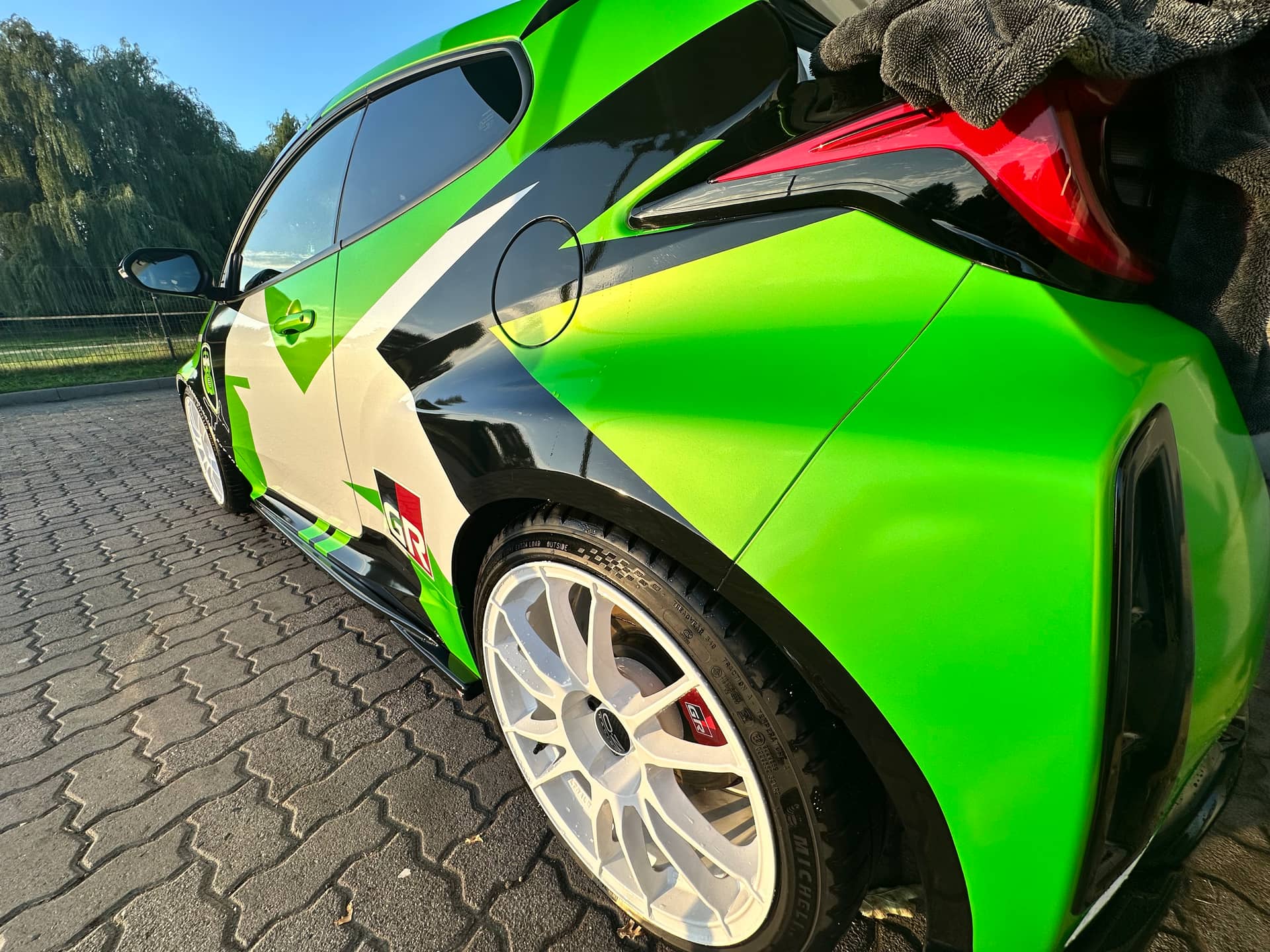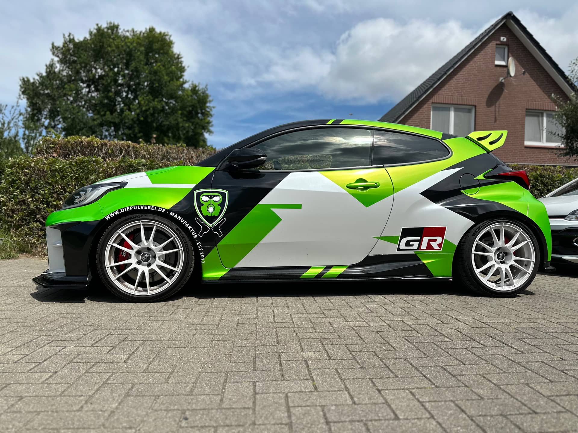 Das kann man natürlich googlen. Und dann auch die Kombination von Lackfarbe des Fahrzeuges und weißer Felge anhand von anderen Fahrzeugen prüfen, z.B.: „gr yaris rim white“ oder „ford st white rim“. Geht ja hauptsächlich um den Farbkontrast zwischen Fahrzeug und Felge.