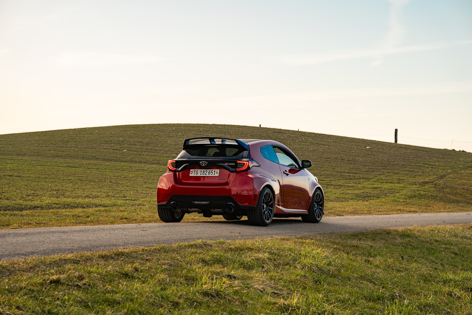 Ich meine so ein GR Yaris hat mit 225er Reifen für jede Fahrt auf öffentlichen Strassen immer genug Auflagefläche in Bezug auf das Fahrzeuggewicht und die Leistungsübertragung – ebenso für das Bremsmoment. Das schöne am GR Yaris finde ich ist das man nur schon mit der Veränderung des Reifendrucks die Charakteristik was für eine Feedback einem der Wagen gibt unheimlich stark verändert werden kann.