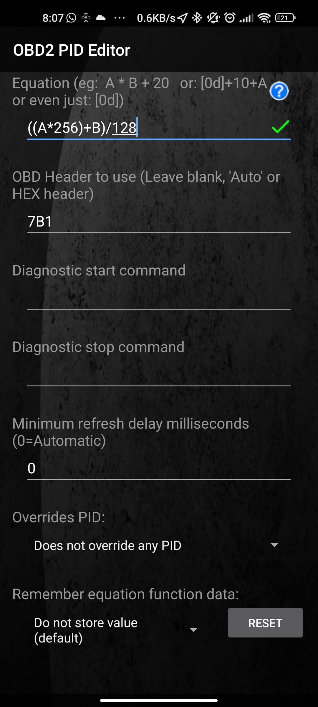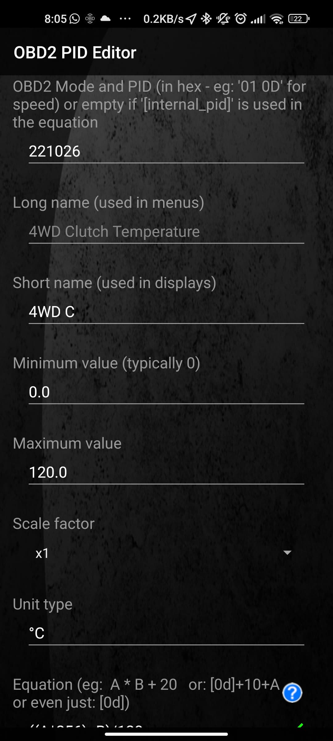 nope, keine Konvertierung, die machst du ja über die Gleichung in Torque. Keine Ahnung, was das Problem ist, wie gesagt, bei mir sehen alle Eingaben 1:1 gleich aus und alles klappt. Vielleicht hast du andere Sensoren drin?