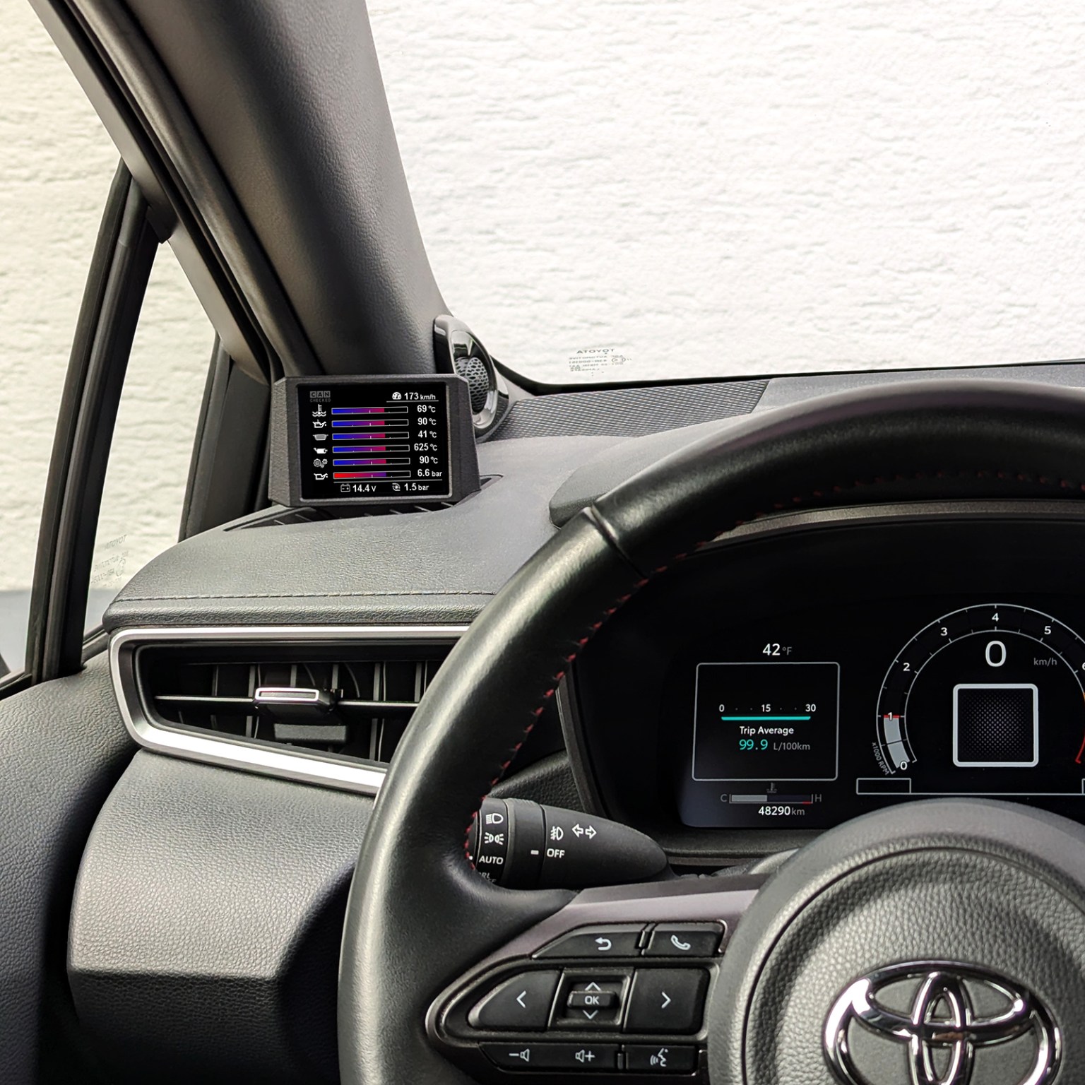 Das canchecked Display bei Gr Yaris Gen2 ist ja relativ klein, es gibt ja theoretisch auch die möglichkeit es oberhalb auf dem Armaturenbrett zu montieren, so wie hier. So wäre auch ein grösseres Display möglich. Hat das einer?