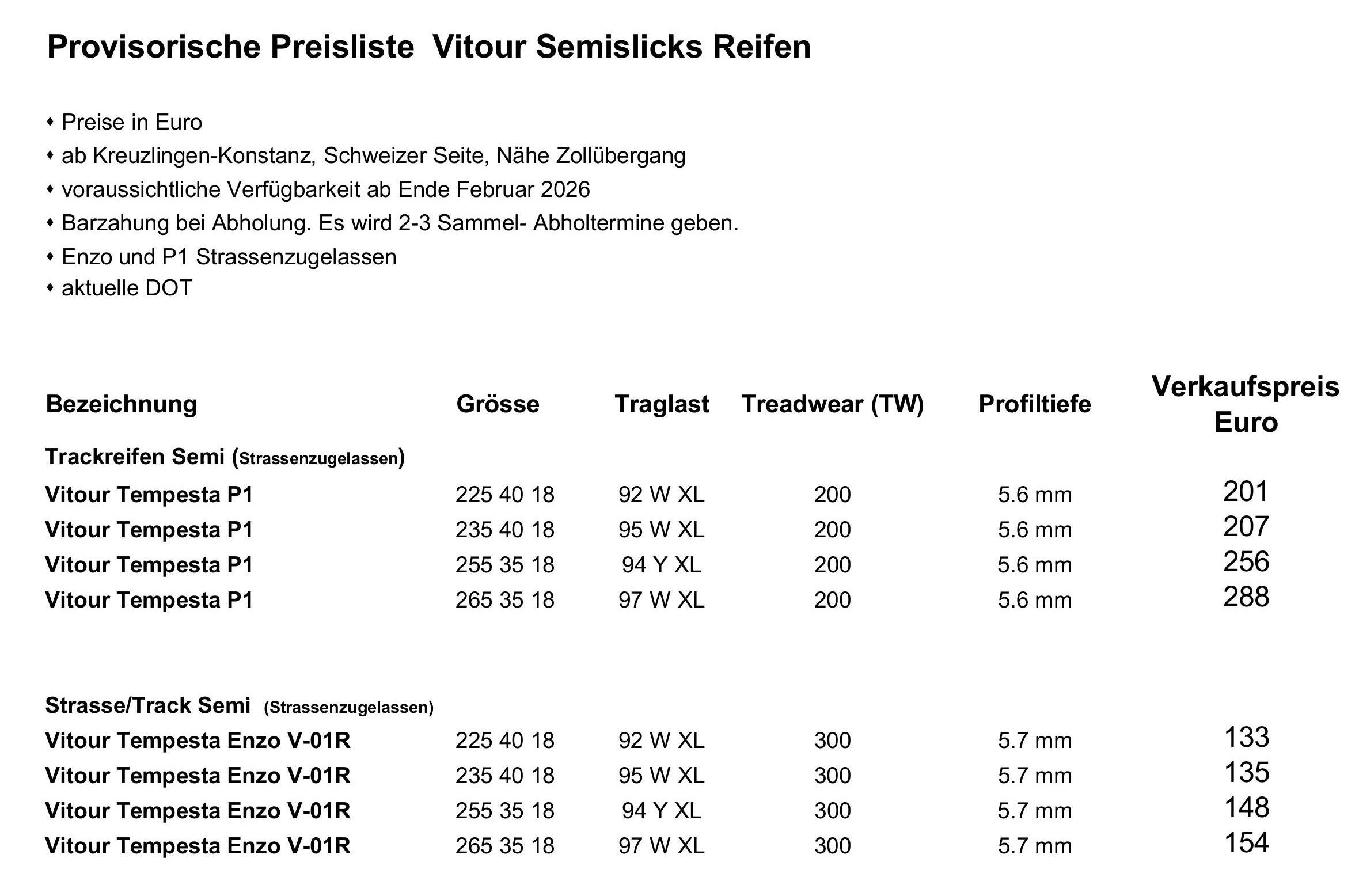 Da ich selbst auch einige Sätze pro Jahr brauche, wäre das eine Möglichkeit günstig an Semis für den Track und an “Halbsemis” für daily ranzukommen. Es geht um dem reinen Semi; Vitour Tempesta P1, und den Halbsemi; Vitour Enzo V-01R (von dem spricht Piras).