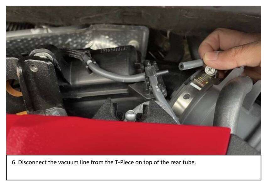 Schlauch steckt in einem T-Stück hinter der Ausgangsseite vom Luftfilterkasten
