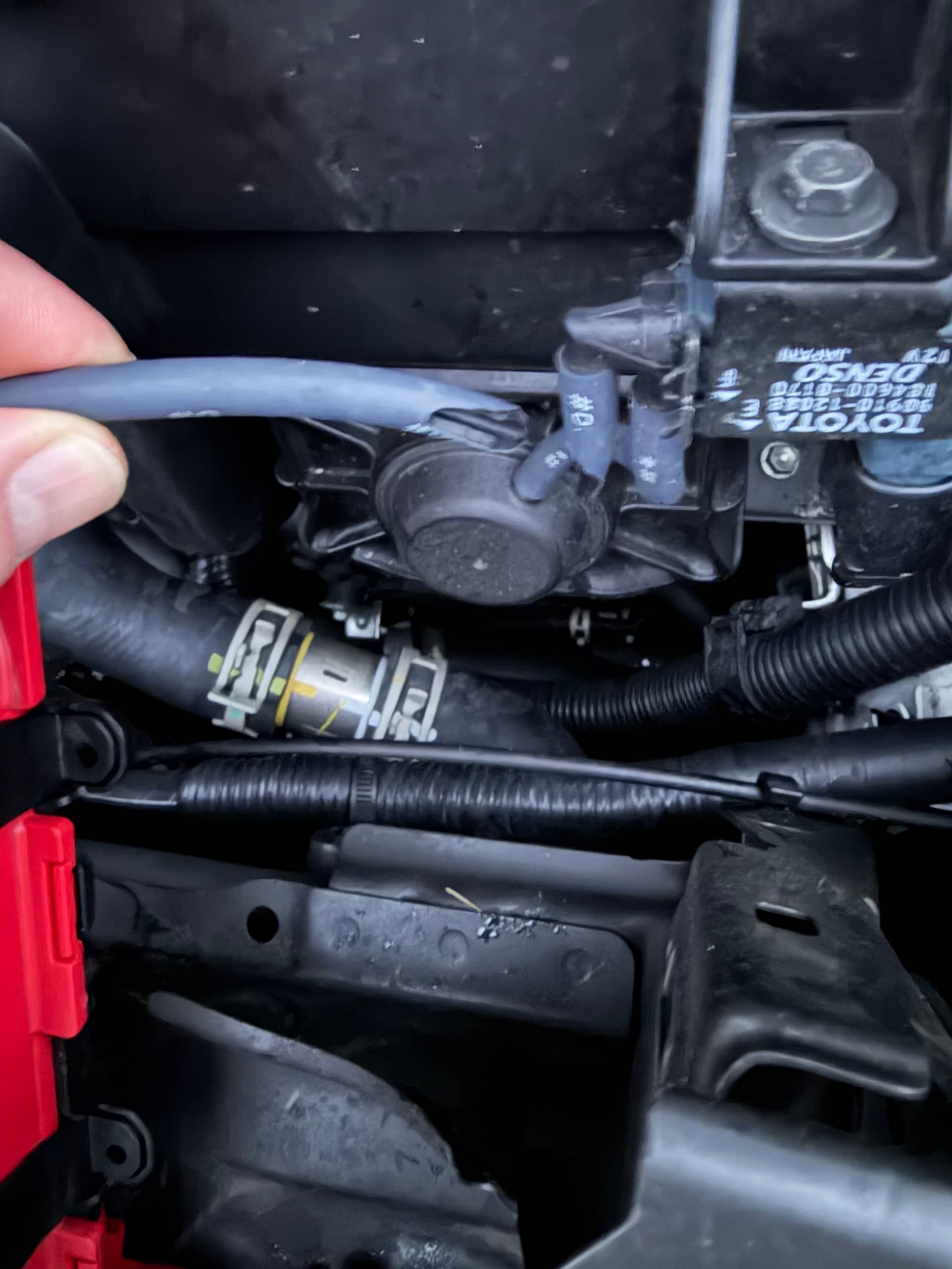 Das Bauteil unter der Motorabdeckung ist der Ladedrucksensor und ist mit einer Schraube in der Ansaugbrücke eingeschraubt.