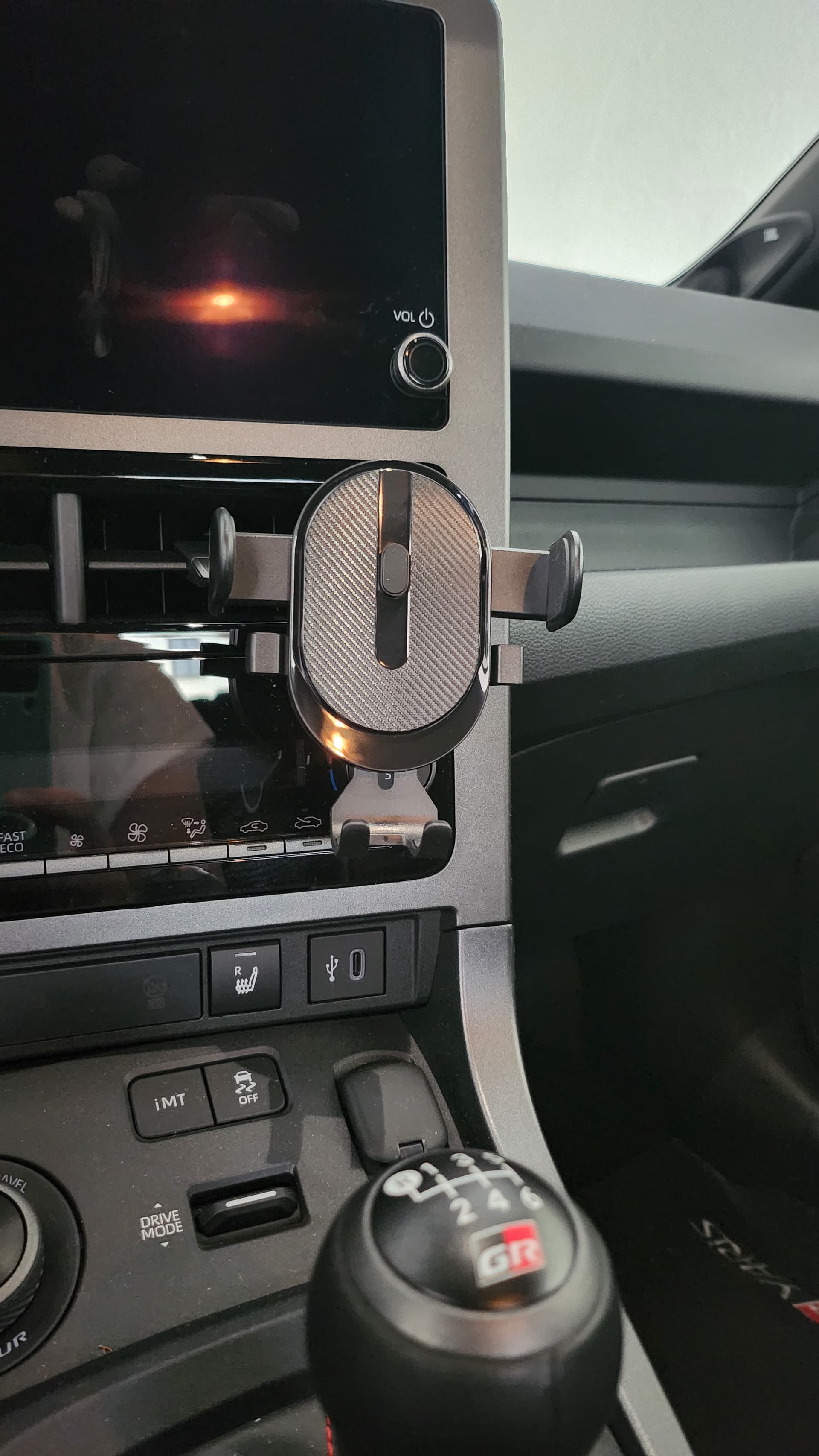 Also ich hab den Brodit Proclip vom vFL genommen, erhitzt und ein bisschen enger gebogen. Daraus hab ich mir mal einen Prototypen gebaut, an dem ich die rechte Kante zum Einklemmen benutze. Das Ganze ist für ein Samsung Fold 2. Die Position find ich perfekt, es ist nur etwas wacklig und beim Driften über Schotter ist die Halterung einmal abgefallen. Werde mir weiter Gedanken machen