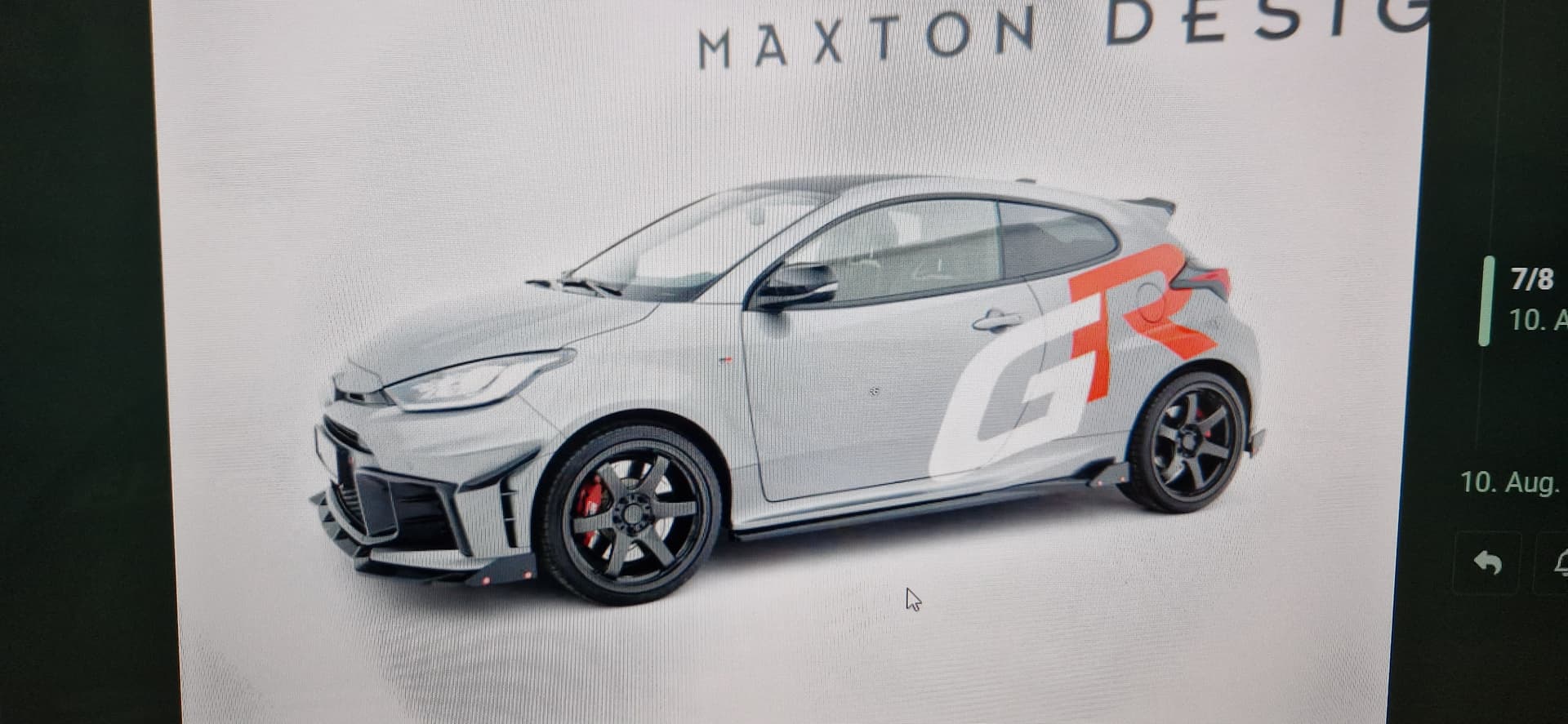 Finde das seitlich bedruckte GR wie auf den Rally Modellen echt cool. Nur das wäre aber irgendwie zu wenig. Dann siehts zu sehr nach Autohausfolierung aus.