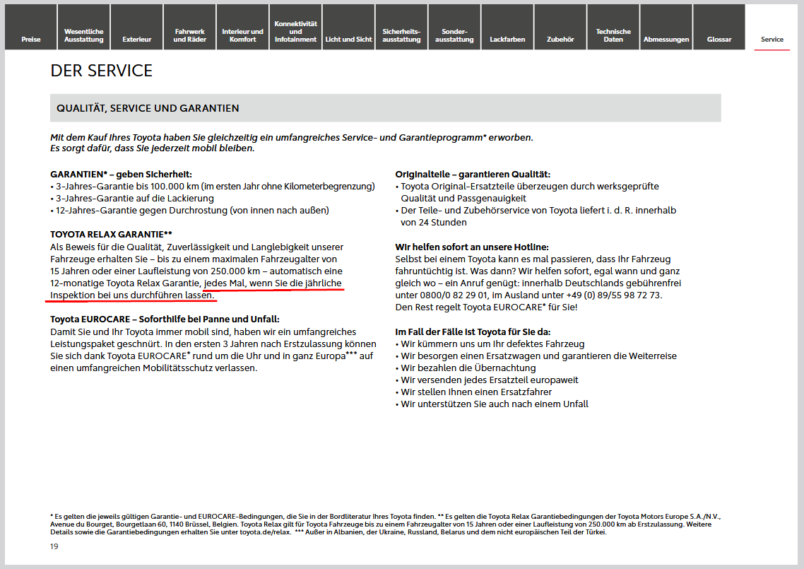 Das schöne bei der Relax-Garantie ist ja, dass man sie vor einem etwaigen Fahrzeugverkauf einfach durch eine Toyota-Inspektion wieder „aktivieren“ kann.