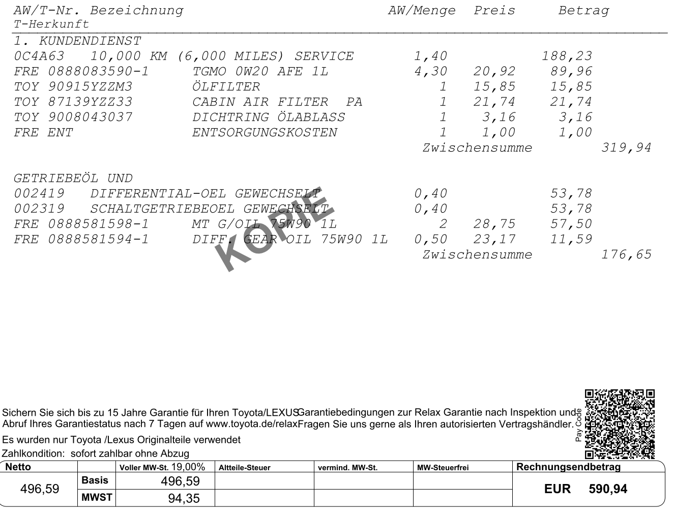 Ich habe meinem FL AT aus September 2024 nun die 10.000er machen lassen diese Woche. Dabei habe ich erneut alle Öle wchseln lassen und 598€ bezahlt inkl. Leihwagen.
