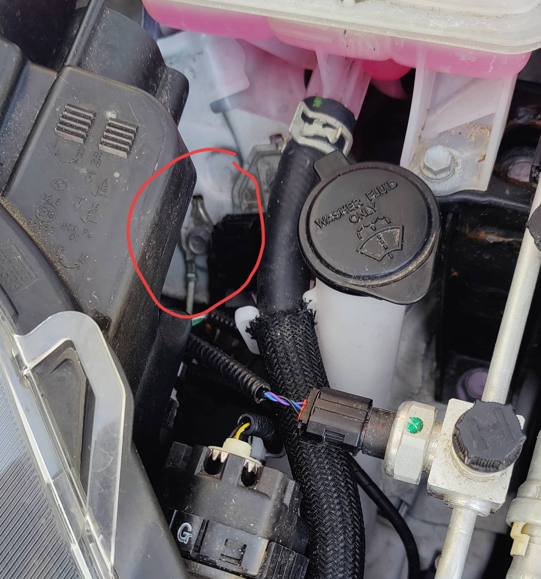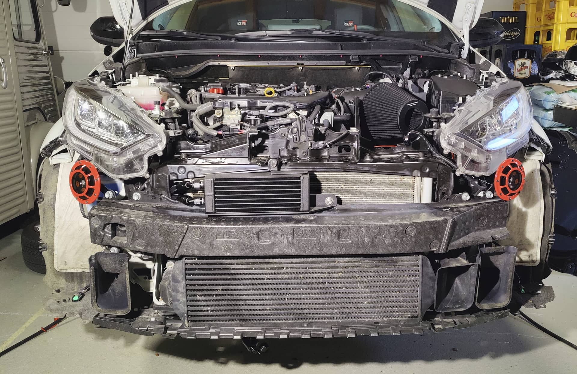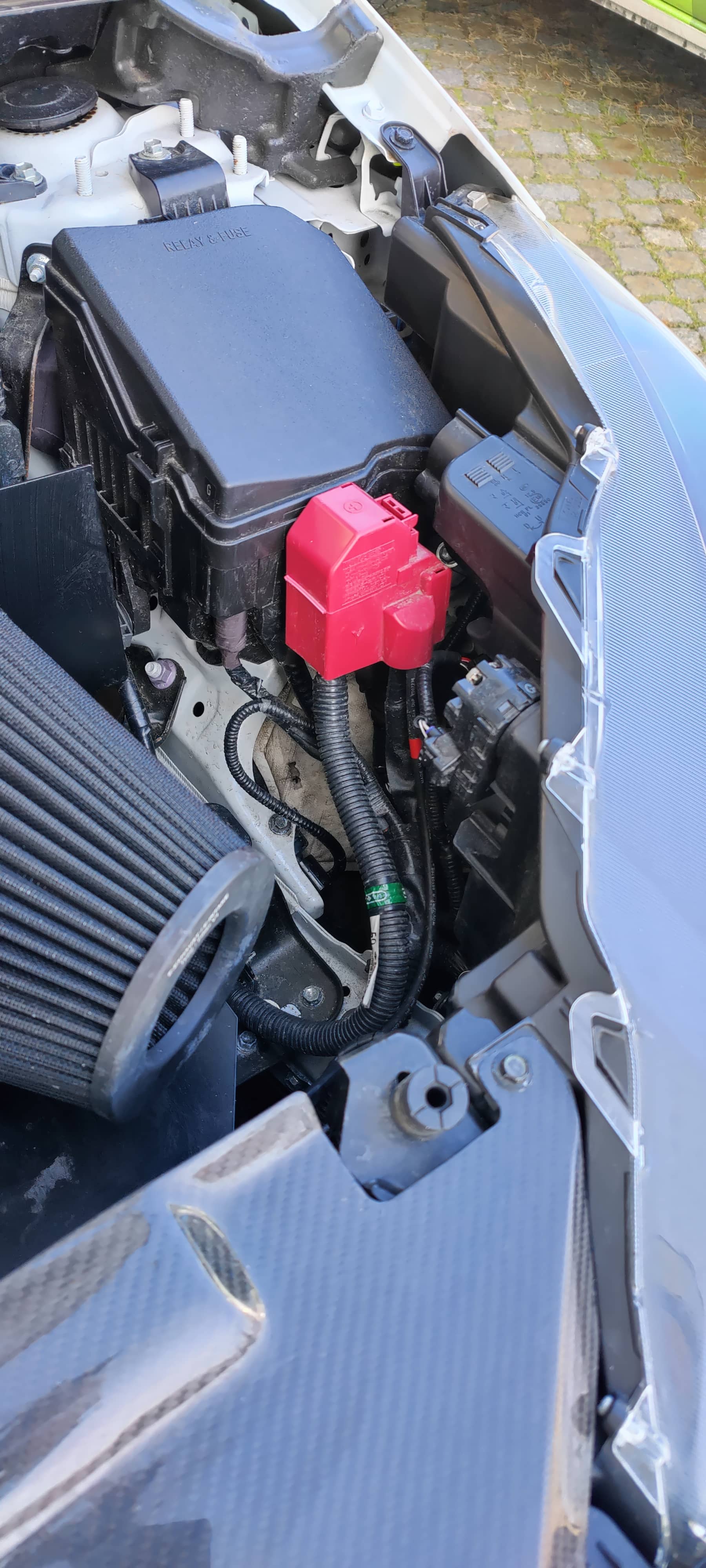 Das Kabel habe ich mir selbst gemacht. Strom ist ja rechts vorhanden am Anschluss für das Starterkabel und den Massepunkt habe ich links vor dem Kühlwasserbehälter genommen. Dort habe ich auch das Relais befestigt. Unter die Frontschürze hat das gut gepasst. Wenn du keinen Ölkühler einbaust kannst du die Hupen auch gut links und rechts im Grill positionieren.