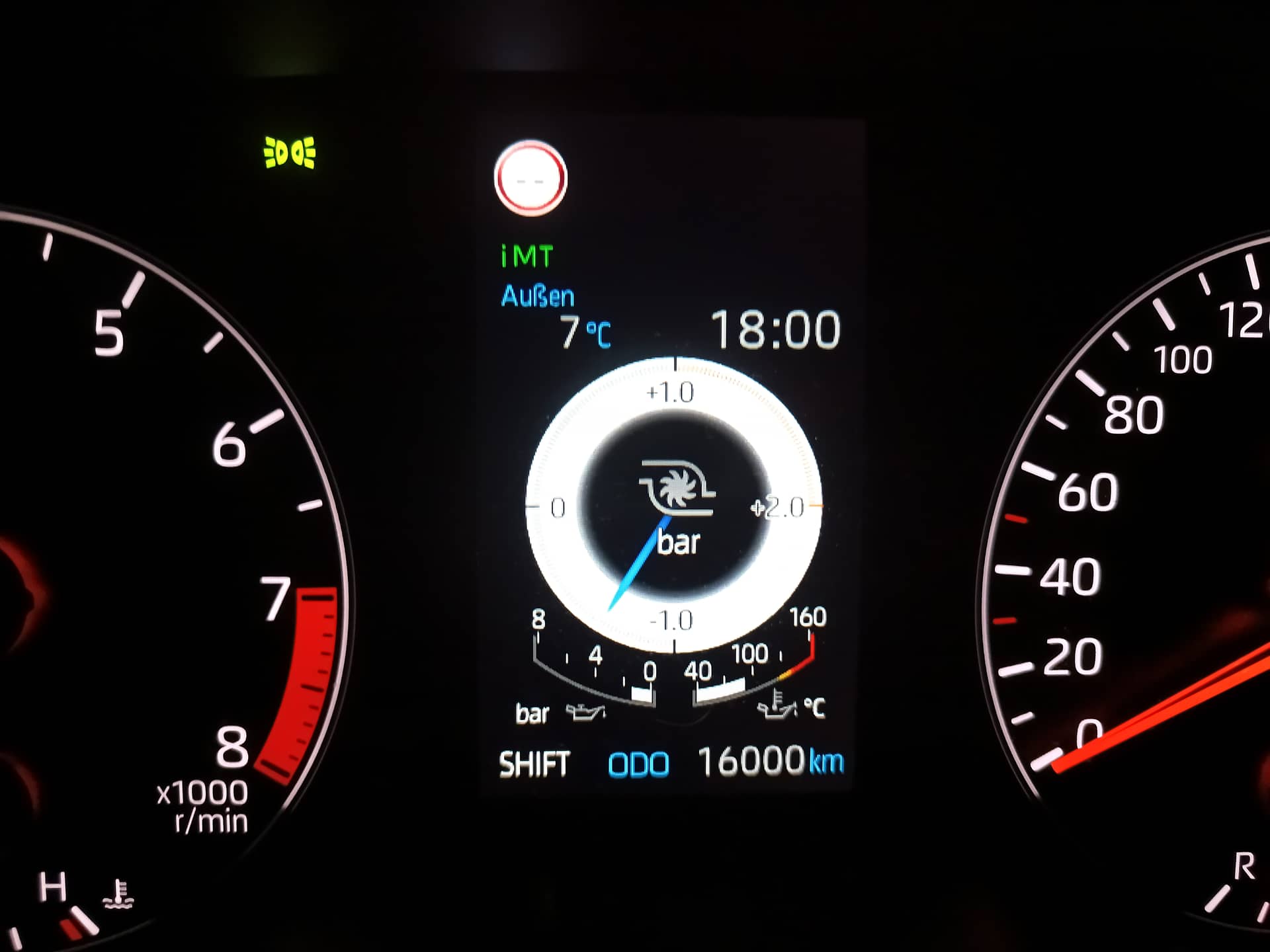 Durch die praktische Kombination aus Ladedruck, Öl Temperatur, Wasser Temperatur und Öldruck auf einen Blick, kann man dem Motor ordentlich warm und kalt fahren, wie es sich bei einem Verbrenner und gerade bei einem Turbo Motor gehört.