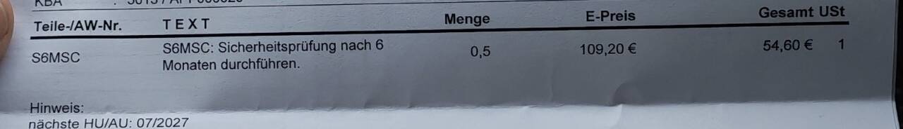 Ich durfte heute 124€ für diesen Service bezahlen. Schon unverschämt für ein wenig das Auto anschauen..