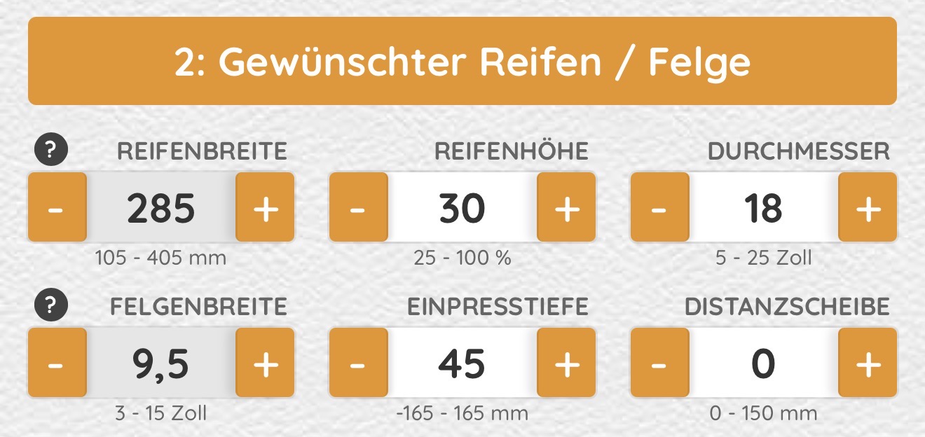 Laut Reifenrechner sollten 285er passen (Bilder angehängt).