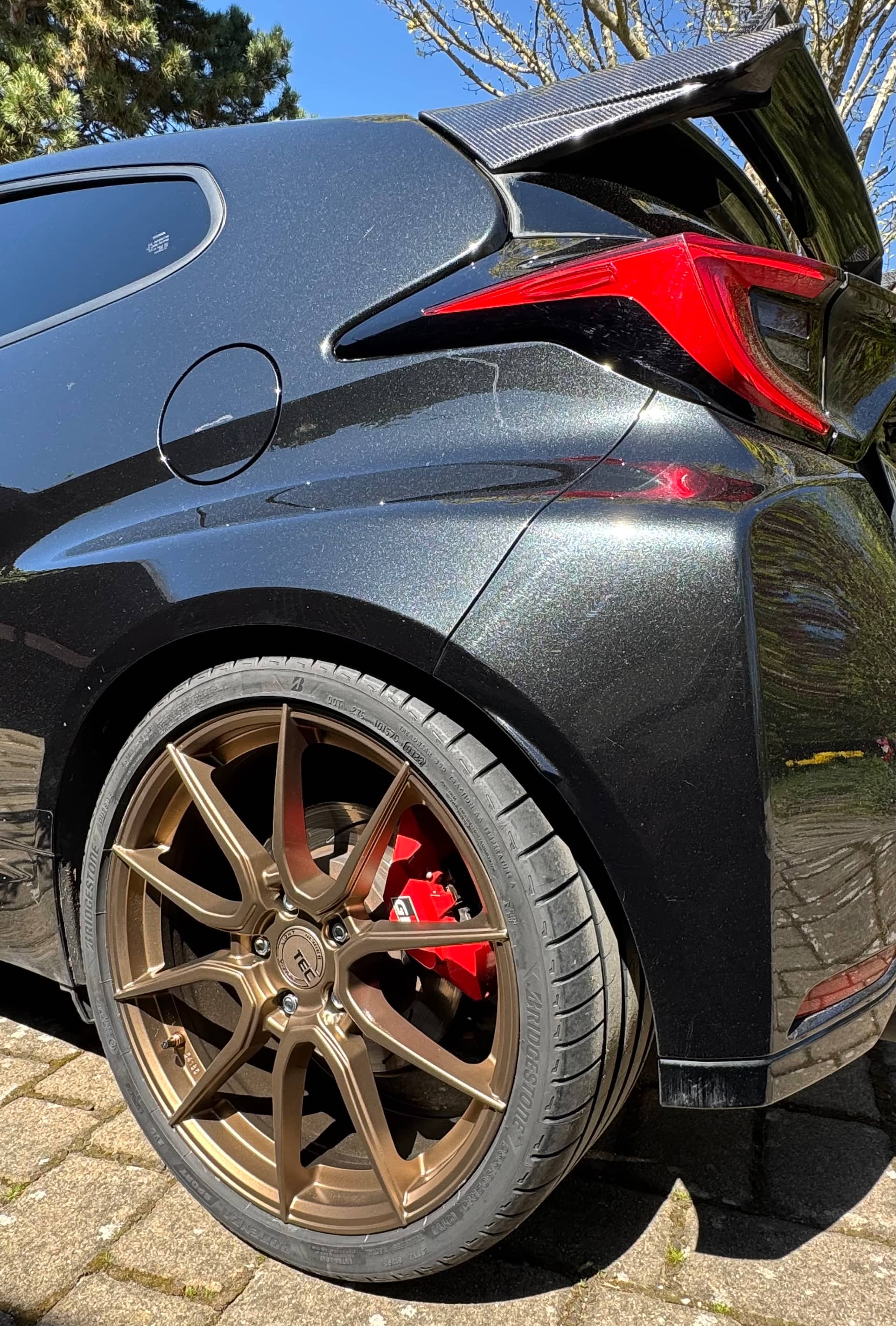 Gewicht der felgen ist 9,6 kg. finde ich akzeptabel für 8,5 Zoll breite Felgen (Flow forged). Mit Reifen zeigt meine Xiaomi waage 19,9 kg, vermutlich +/- 0,2 kg.